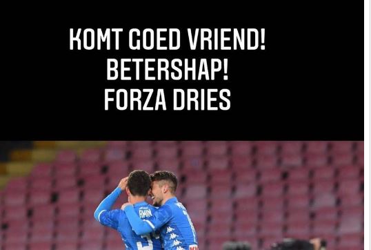 Amin Younes si affida a Instagram: «Andrà tutto bene amico mio. Forza Dries», questo il messaggio scritto dal suo canale, l’ex calciatore azzurro che ha vissuto in