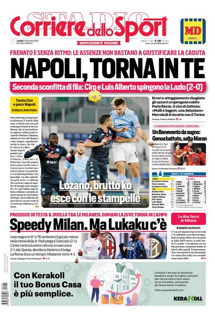 NewsCalcioIn Evidenza Rassegna stampa del 21 dicembre. Edicola sportiva nazionale By Giuseppe Sacco il Dic 21, 2020 - 08:15:03 0 Condividi Nelle prime pagine sportive nazionali dei principali quotidiani sportivi nazionali Factory della Comunicazione CalcioNapoliRassegnaStampa 0 Condividi FacebookTwitterGoogle+ReddItWhatsAppPinterestE-mail
