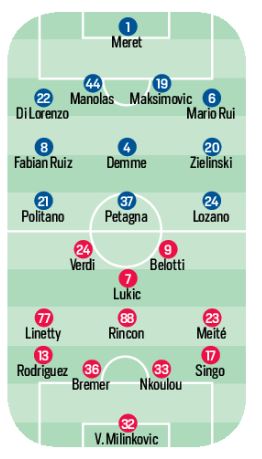 [Formazioni] Napoli/Torino, Demme al posto di Bakayoko. Verdi al fianco di Belotti