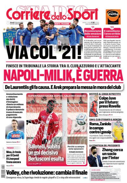 NewsCalcioIn Evidenza Rassegna stampa del 31 dicembre – Edicola sportiva nazionale By Giuseppe Sacco il Dic 31, 2020 - 08:00:22 0 Condividi In primo piano dai principali quotidiani sportivi nazionali Factory della Comunicazione CalcioNapoliRassegnaStampa 0 Condividi FacebookTwitterGoogle+ReddItWhatsAppPinterestE-mail