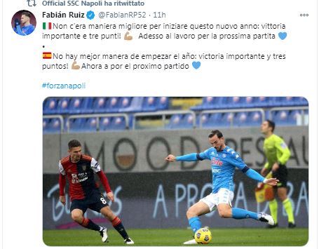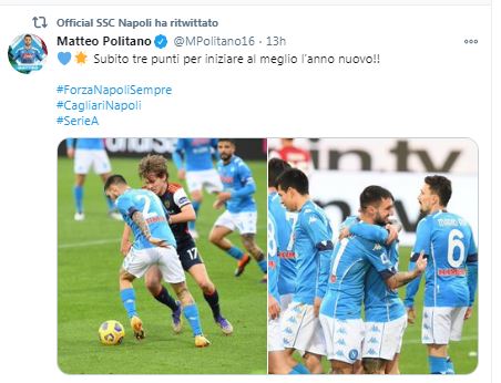 NewsCalcioIn Evidenza Post Cagliari/Napoli (1-4), i commenti social di 4 moschettieri azzurri By Giuseppe Sacco il Gen 4, 2021 - 07:40:24 0 Condividi Così il commento di 4 azzurri sui rispettivi profili twitter Factory della Comunicazione CagliariNapolitwitter 0 Condividi FacebookTwitterGoogle+ReddItWhatsAppPinterestE-mail