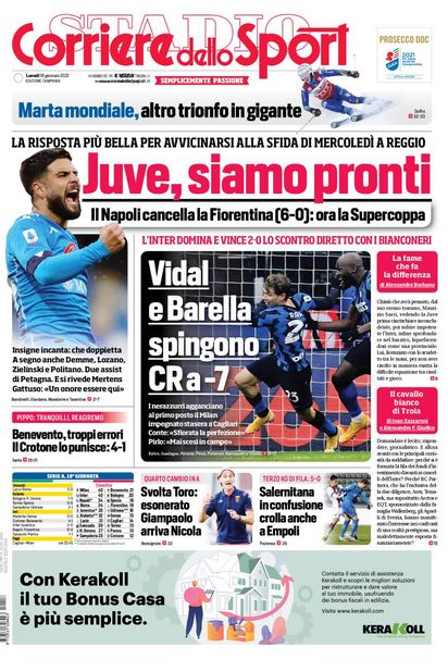 Rassegna stampa del 18 gennaio. Edicola dello sport