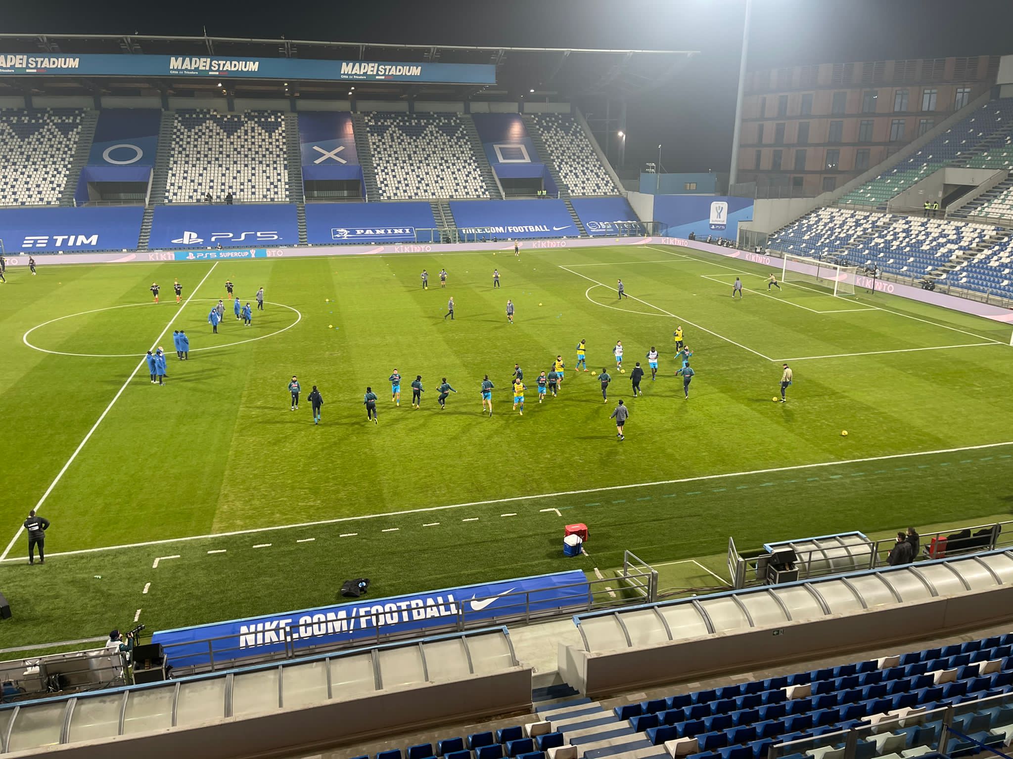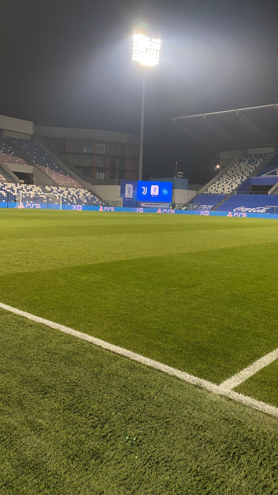 18,58 – Il magazziniere del Napoli Tommaso Starace manda una foto del “Mapei Stadium”, sede della finale di Supercoppa italiana degli azzurri contro la Juventus.