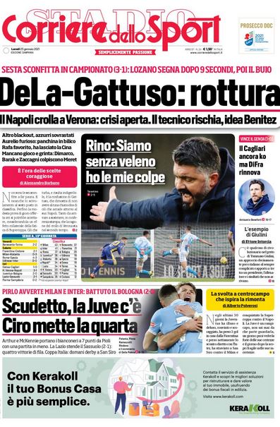 NewsCalcioRassegna Stampa CdS Campania – DELA-GATTUSO: ROTTURA. Ringhio rischia, Benitez è tornato dalla Cina! By Giuseppe Sacco il Gen 25, 2021 - 07:20:39 0 Condividi In primo piano e nel profilo interno del CdS edizione Campania Factory della Comunicazione BenitezCalcioDe LaurentiisGattuso 0 Condividi FacebookTwitterGoogle+ReddItWhatsAppPinterestE-mail