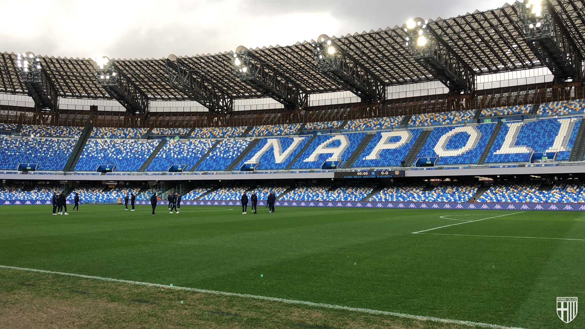 16,35 – Il Parma è entrato sul terreno di gioco per la ricognizione dello stadio Diego Armando Maradona