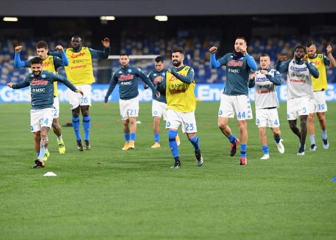 20,07 – In campo il Napoli per la fase di riscaldamento