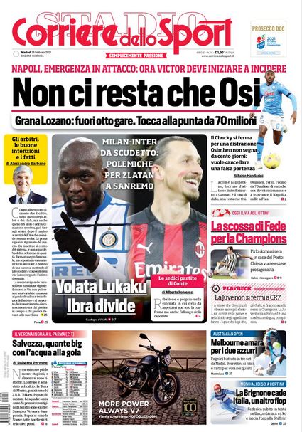 NewsCalcioIn Evidenza Rassegna stampa del 16 febbraio. Edicola sportiva nazionale By Giuseppe Sacco il Feb 16, 2021 - 07:00:22 0 Condividi In primo piano dai principali quotidiani sportivi nazionali Factory della Comunicazione CalcioNapoliRassegnaStampa 0 Condividi FacebookTwitterGoogle+ReddItWhatsAppPinterestE-mail