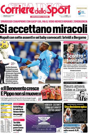 NewsCalcioIn Evidenza Rassegna stampa del 21 febbraio. Prime pagine sportive nazionali By Giuseppe Sacco il Feb 21, 2021 - 07:30:27 0 Condividi In primo piano dai principali quotidiani sportivi nazionali Factory della Comunicazione CalcioNapoliRassegnaStampa 0 Condividi FacebookTwitterGoogle+ReddItWhatsAppPinterestE-mail