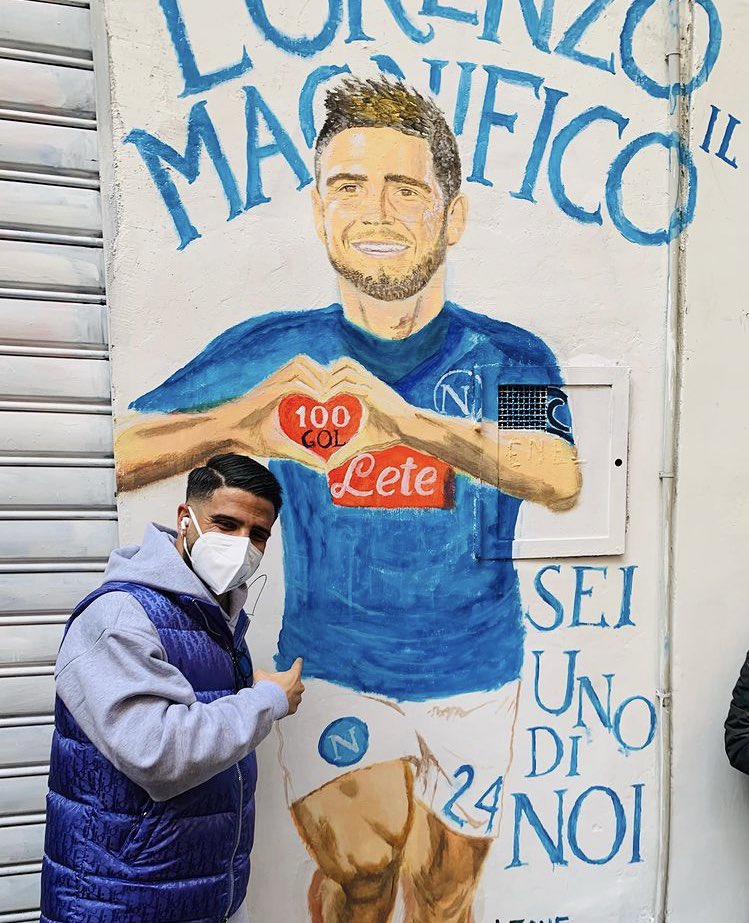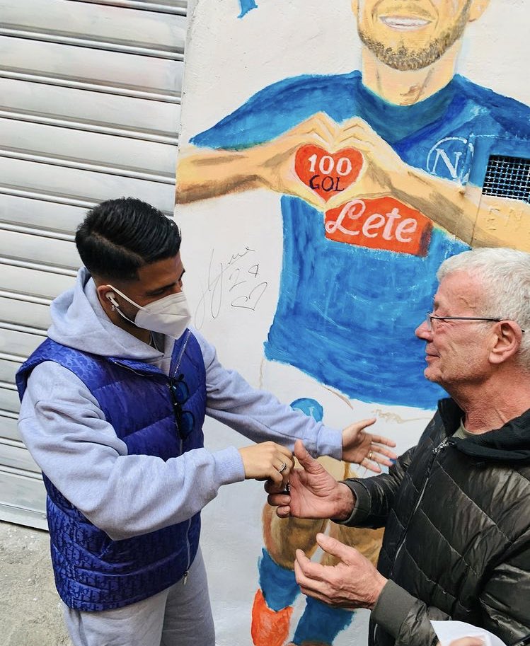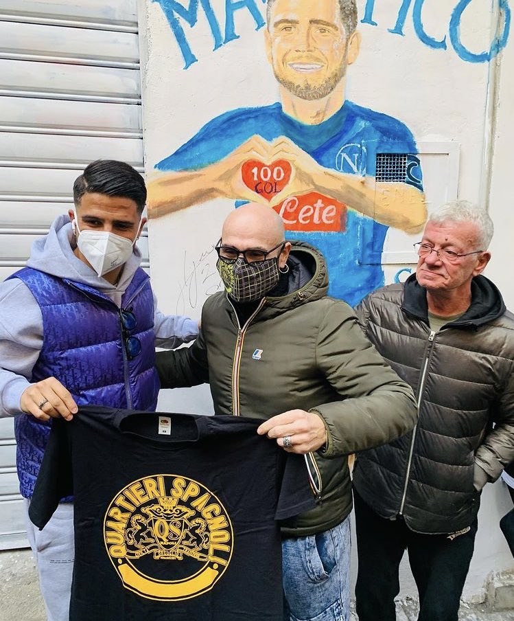 Lorenzo Insigne oggi ai Quartieri Spagnoli, a Napoli. A Largo Maradona, accanto a quello di Dries Mertens, spunta un murales in suo onore. F