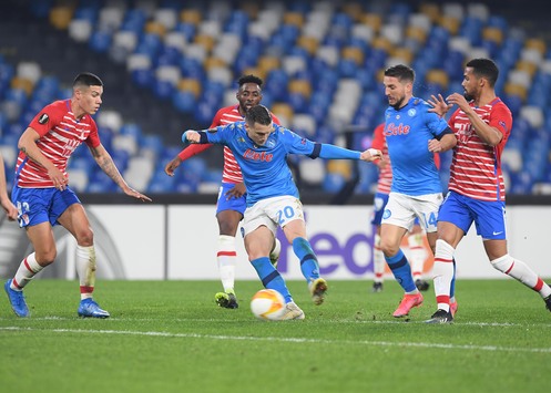 Il Napoli batte il Granada ma non basta per passare il turno. Gli azzurri vincono 2-1 e sono gli spagnoli a qualificarsi per gli ottavi forti del 2-0 conquistato in Andalusia. Il match si apre bene con il bellissimo quanto fulmineo gol di Zielinski. Piotr si inventa una penetrazione palla al piede e poi infila un sinistro potente e preciso. Il Granada però pareggia prima della mezzora con uno stacco di Montoro. Da lì è tutto Napoli. Traversa di Insigne al 35′, occasione per Elmas al 52′, gol del 2-1 di Fabian all’ora di gioco. Poi assalto all’arma azzurra con l’area spagnola sotto attacco. Al 90esimo colpo di testa di Ghoulam che Rui Silva respinge sulla linea. Poteva essere lo sprint per i 7 minuti di recupero finale. Resta la generosità e l’orgoglio. Napoli fuori dalla Europa League. Si ricomincia domenica con la corsa in campionato nel derby contro il Benevento.