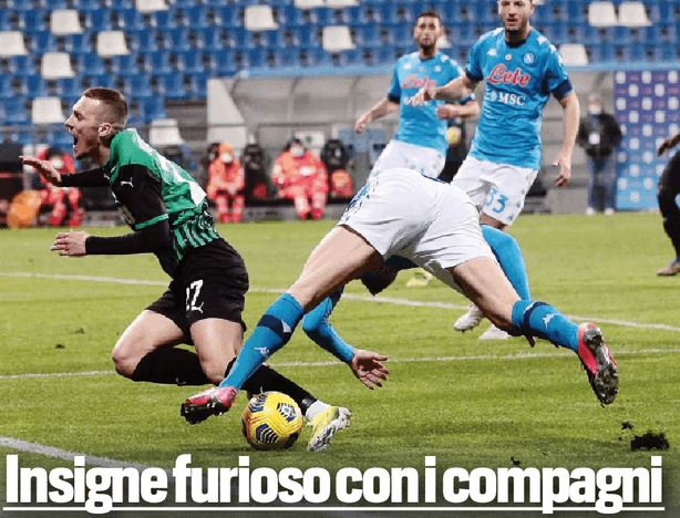 La conferma, sotto gli occhi di Rizzoli. Dopo Juve-Crotone, Marini concede il bis: gara concreta, sempre sicuro, metro univoco (non è poco), preciso nei rigori al Sassuolo e in quello al Napoli. Rischia Djuricic su Di Lorenzo: il giallo gli va di lusso. Sul recupero, aggiunti ai 3’ i secondi persi dopo il rigore di Insigne (89’41”) e prima della ripresa del gioco (oltre il 90’).
