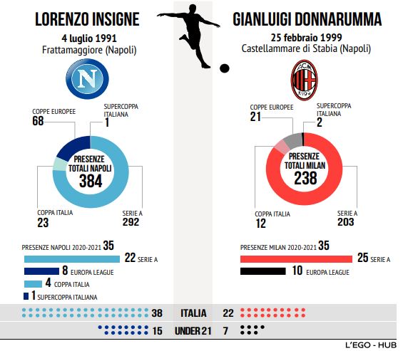 Si rinnova la sfida, il tredicesimo incrocio tra Insigne e Donnarumma