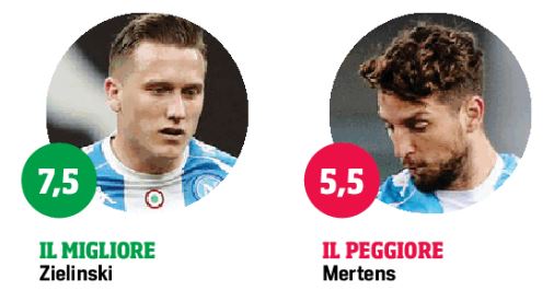 Mertens 5,5 – Non è in condizione e si vede bene. In area gli manca lo spunto, così Insigne e Zielinski non trovano la sponda ideale per arrivare più facilmente alla conclusione.