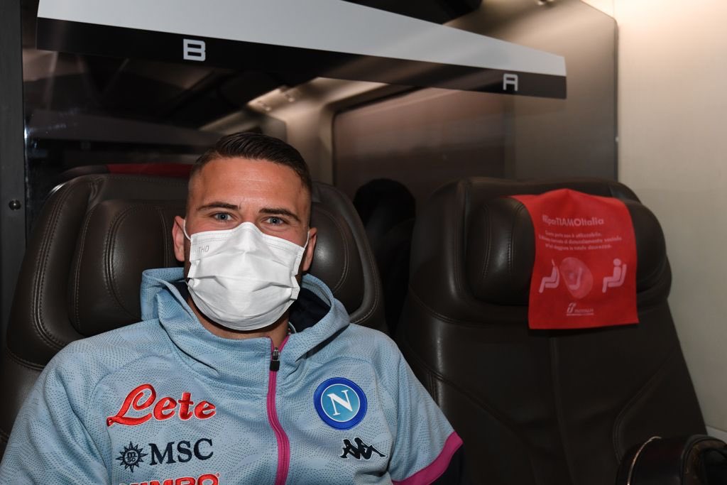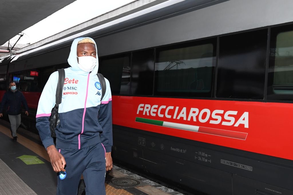 Il Napoli è in partenza, con il Freccia Rossa, destinazione Roma, dove domani gli azzurri affronteranno la squadra di Fonseca. Il twitter del club azzurro aggiorna con le foto della squadra partenopea.
