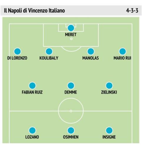 Il Mattino presenta come sarebbe il Napoli con il tridente di Italiano (Grafico)