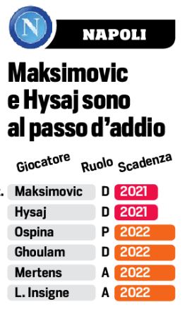 Il Napoli congederà a fine stagione Nikola Maksimovic (29) ed Elseid Hysaj (27) che si accaseranno gratis altrove.