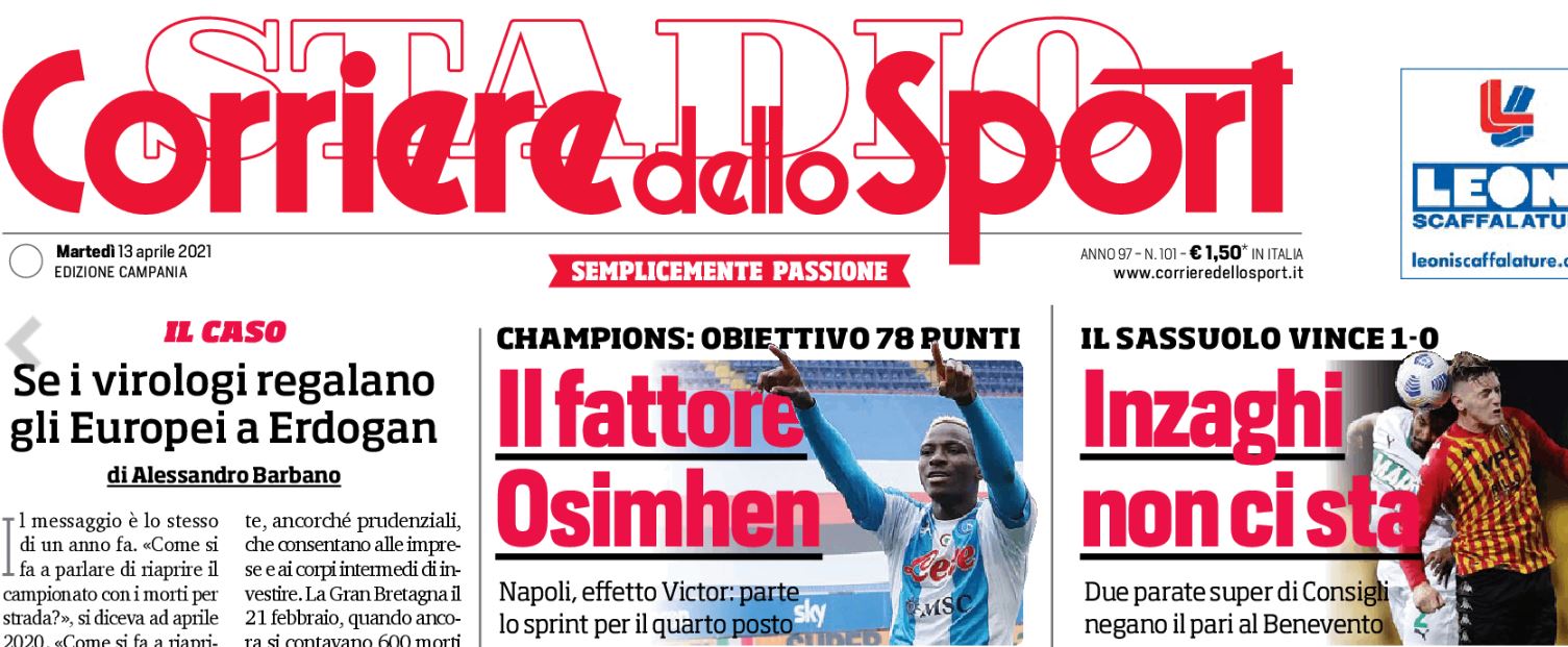Rassegna stampa del 13 aprile. Prime pagine sportive nazionali