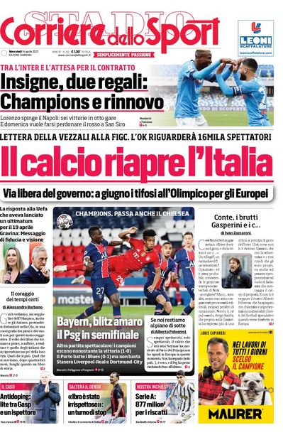 NewsCalcioIn Evidenza Rassegna stampa del 14 aprile. Prime pagine sportive By Giuseppe Sacco il Apr 14, 2021 - 07:20:46 0 Condividi In primo piano sui principali quotidiani sportivi nazionali Factory della Comunicazione CalcioNapoliRassegnaStampa 0 Condividi FacebookTwitterGoogle+ReddItWhatsAppPinterestE-mail