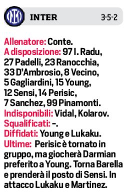 Domenica sera alle ore 20,45 allo stadio Diego Armando Maradona, il Napoli affronterà l’Inter per la trentunesima giornata. Per il tecnico degli azzurri due i dubbi di formazione. A sinistra Hysaj o Mario Rui, con l’albanese in vantaggio. In attacco Osimhen o Mertens, con il nigeriano che dovrebbe spuntarla. Per il resto Manolas-Koulibaly in difesa, mentre Politano pronto a prendere il posto dello squalificato Lozano. In casa nerazzurra torna dalla squalifica Barella, mentre sulle fasce ancora Darmian e di nuovo spazio ad Hakimi. In attacco il suo Lukaku-Lautaro Martinez.