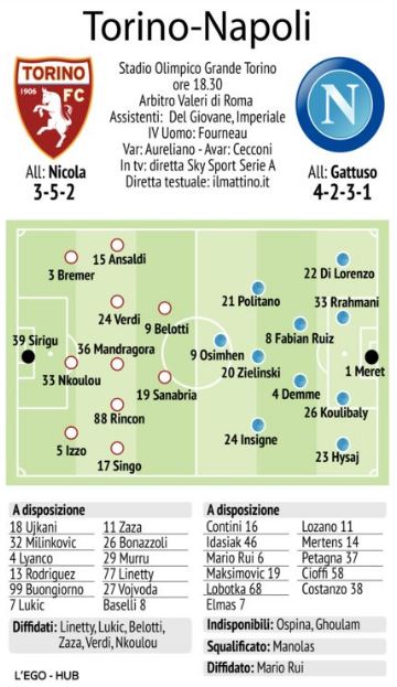 Corsa Champions – Torino/Napoli: “Il Mattino” dà le sue possibili formazioni