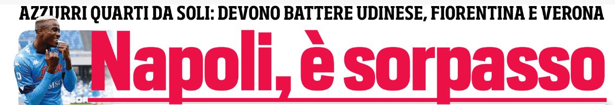 CdS Campania – “NAPOLI E’ SORPASSO”. La Juve si trova a rincorrere gli azzurri