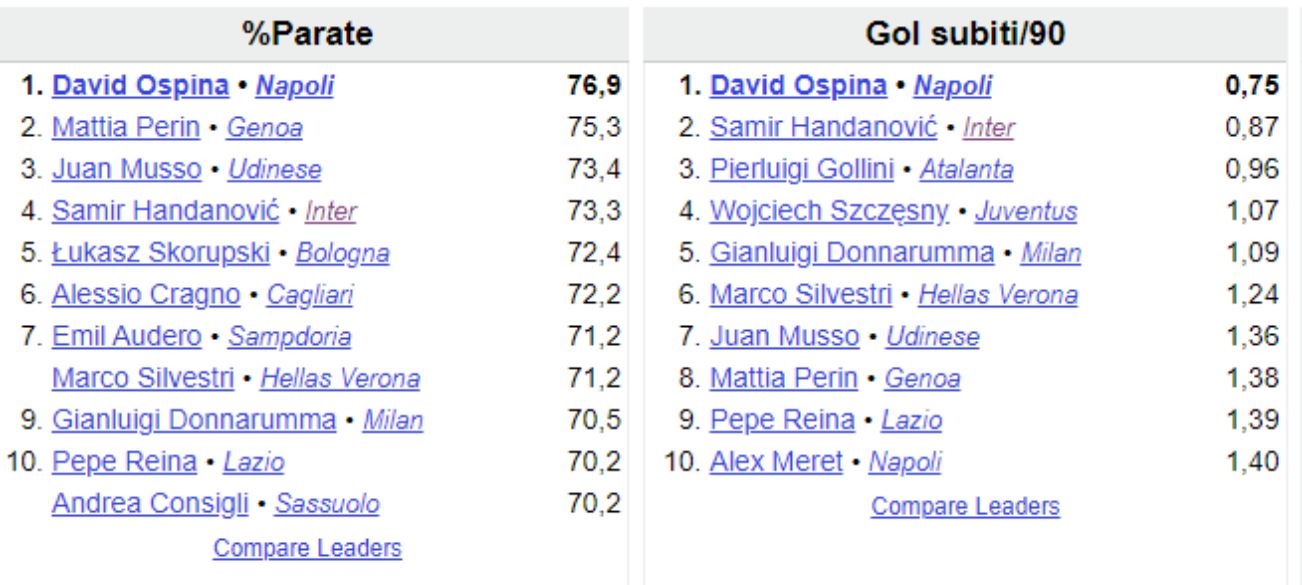 “Gattuso è stato massacrato per preferire spesso Opsina a Meret. Il colombiano, però, ha la percentuale di parate più alta della Serie A, ed è il portiere del campionato che subisce meno reti ogni 90′ (0.75, con l’ex Spal si sale a 1.40)“.