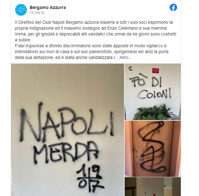 L’Unione Azzurra Nel Mondo (UANM), a nome di tutti i Club Napoli che rappresenta, intende esprimere profonda indignazione per il grave episodio di inciviltà di cui è stata vittima Enzo Celentano, collaboratore del Club Napoli Bergamo Azzurra. Non siamo disposti ad assistere in silenzio all’ennesima manifestazione di intolleranza ed odio verso Napoli ed i napoletani, non chiuderemo gli occhi davanti all’ulteriore episodio di discriminazione, sintomo di una mentalità razzista, volgare e bieca che sta sempre di più diffondendosi nel nostro paese.