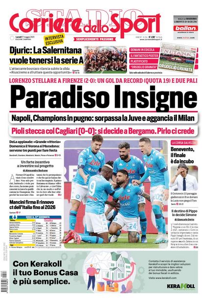 NewsCalcioIn Evidenza CdS Campania – “PARADISO INSIGNE”. Lorenzo stellare e gol da record By Giuseppe Sacco il Mag 17, 2021 - 08:00:26 0 Condividi In primo piano e nel profilo interno del Cds edizione della Campania. A breve tutti i dettagli Factory della Comunicazione CalciogolInsigneNapoli 0 Condividi FacebookTwitterGoogle+ReddItWhatsAppPinterestE-mail