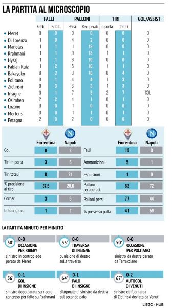 Fiorentina/Napoli: la gara al microscopio de “Il Mattino”. Gol, falli, tiri