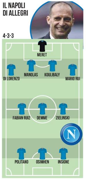 Ecco perché a Napoli potrebbe riproporre un 4-3-3 che già ha utilizzato ai tempi della Juventus. Solito blocco difensivo, Demme regista, Fabian e Zielinski ai suoi lati, Osimhen, prima punta e Insigne a sinistra.