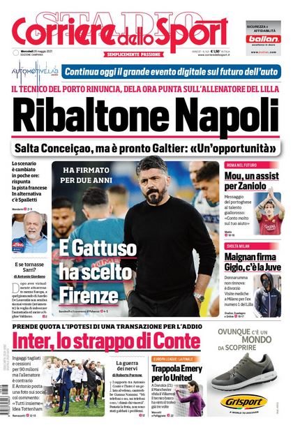NewsCalcioIn Evidenza CdS Campania – “IL RIBALTONE”. Lo scenario cambiato in poche ore, due le alternative per DeLa By Giuseppe Sacco il Mag 26, 2021 - 07:20:59 0 Condividi In prima pagina e nel profilo interno del CdS edizione Campania Factory della Comunicazione CampaniaCdSNapoliPagina 0 Condividi FacebookTwitterGoogle+ReddItWhatsAppPinterestE-mail