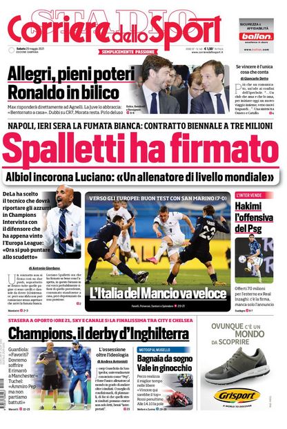 NewsCalcioIn Evidenza CdS Ed. Campania – “SPALLETTI HA FIRMATO”. DeLa ha scelto il tecnico per la Champions By Giuseppe Sacco il Mag 29, 2021 - 07:01:04 0 Condividi In prima pagina e nel profilo interno del Cds edizione della Campania Factory della Comunicazione CalcioCampaniaNapoliRassegna 0 Condividi FacebookTwitterGoogle+ReddItWhatsAppPinterestE-mail