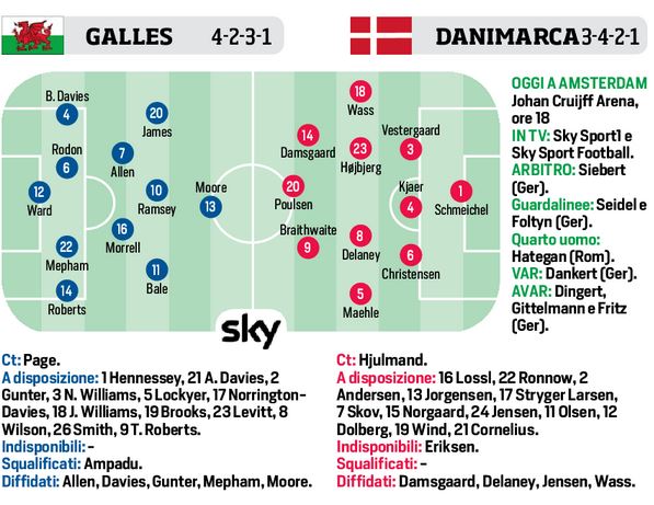 Ottavi, via nel nome di Eriksen. Le possibili formazioni di Danimarca e Galles