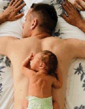 Suo figlio: un mese di vita e le stesse pose di papà.