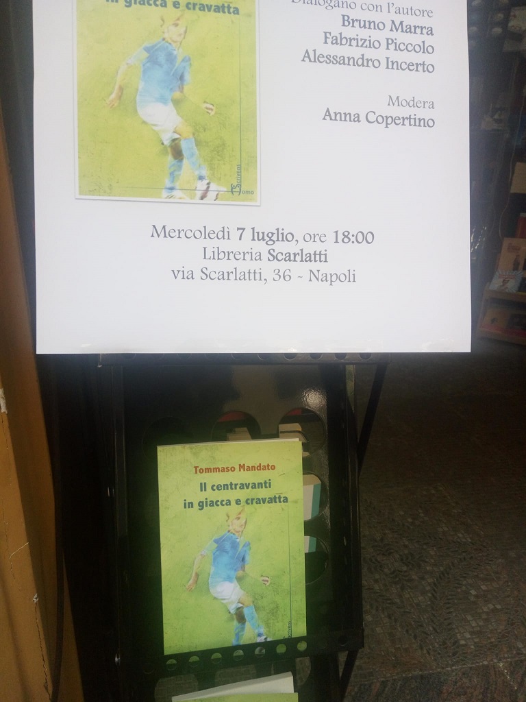 Ieri pomeriggio, presso la “Libreria Scarlatti”, si è svolta la presentazione del libro scritto da Tommaso Mandato “Il centravanti in giacca e cravatta”. La prefazione è di Maurizio De Giovanni, mentre la postfazione di Enzo Decaro. L’ex agente Fifa, ora fondatore del Capus 3S, ha messo in evidenza i punti focali del suo libro. Dai suoi racconti da calciatore, passando agli incontri con Maradona e Massimo Troisi, fino al passaggio da agente Fifa. All’evento c’erano i giornalisti Bruno Marra e Fabrizio Piccolo e l’attore dei “Bastardi di Pizzofalcone”, Alessandro Incerto. Ecco le nostre foto