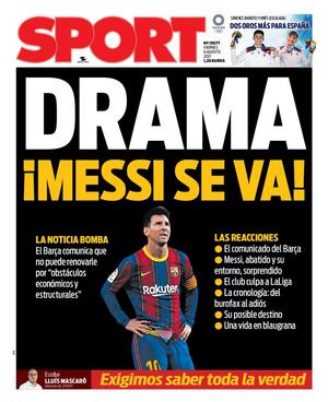 “Sport” scrive “DRAMMA-MESSI”. Ecco i principali quotidiani sportivi del mondo: