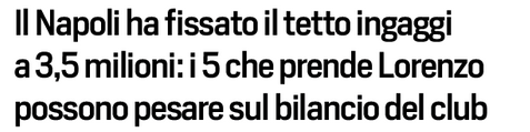 Il Napoli ha fissato il tetto ingaggi a 3,5 milioni: i 5 che prende Lorenzo possono pesare sul bilancio del club