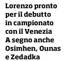 NewsCalcioIn Evidenza CdS Campania – ” GUARDA CHE INSIGNE “. Lorenzo è pronto per il debutto contro il Venezia By Giuseppe Sacco il Ago 15, 2021 - 07:40:15 0 Condividi Così in prima pagina e nel profilo interno del Cds edizione della Campania Factory della Comunicazione CalcioInsigneNapoli 0 Condividi FacebookTwitterGoogle+ReddItWhatsAppPinterestE-mail