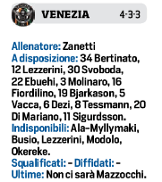 Tra una settimana il Venezia, neo promosso in serie A, esordirà in trasferta contro il Napoli, ma stasera debutterà in Coppa Italia. Allo stadio “Penzo” affronterà il Frosinone per il primo turno in Coppa Italia. Ecco le scelte dei due tecnici Zanetti e Grosso.