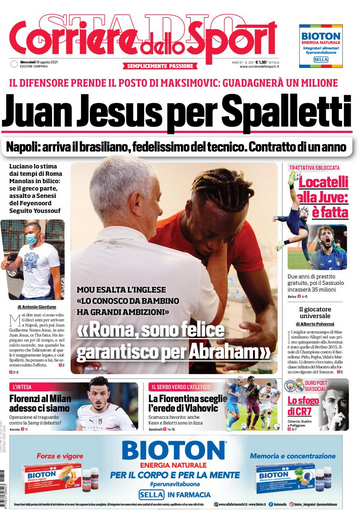 NewsCalcioIn Evidenza CdS Campania – “JUAN JESUS PER SPALLETTI”. Sarà il jolly della difesa By Giuseppe Sacco il Ago 18, 2021 - 08:00:14 0 Condividi In prima pagina e nel profilo interno del Cds edizione della Campania Factory della Comunicazione 1 giornata Napoli-Bologna 3-0CalcioCampaniaCorriere 0 Condividi FacebookTwitterGoogle+ReddItWhatsAppPinterestE-mail