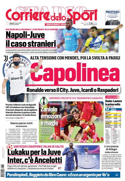 NewsCalcioIn Evidenza Rassegna stampa del 27 agosto. Prime pagine sportive nazionali By Giuseppe Sacco il Ago 27, 2021 - 07:30:56 0 Condividi In Primo piano dai principali quotidiani sportivi nazionali Factory della Comunicazione CalcioNapoliRassegnaStampa 0 Condividi FacebookTwitterGoogle+ReddItWhatsAppPinterestE-mail