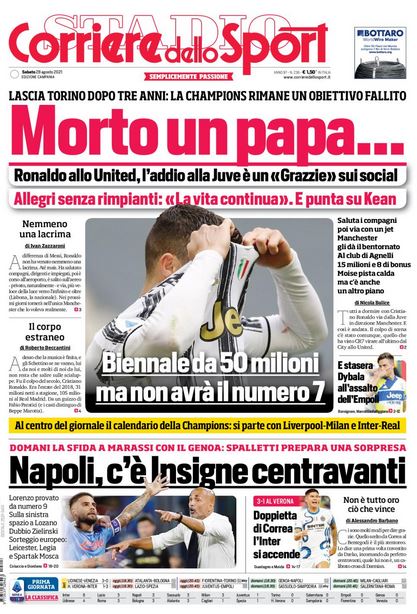 NewsCalcioIn Evidenza Rassegna stampa del 28 agosto. Prime pagine sportive nazionali By Giuseppe Sacco il Ago 28, 2021 - 07:20:08 0 Condividi In primo piano dai principali quotidiani sportivi nazionali Factory della Comunicazione CalcioNapoliRassegnaStampa 0 Condividi FacebookTwitterGoogle+ReddItWhatsAppPinterestE-mail