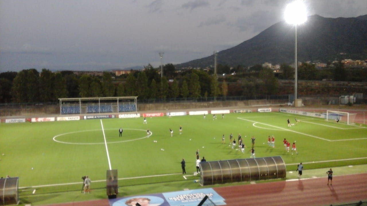 (Foto ilnapolionline) Calcio Femminile: serie A. Napoli-Inter, il riscaldamento e l’ingresso delle squadre