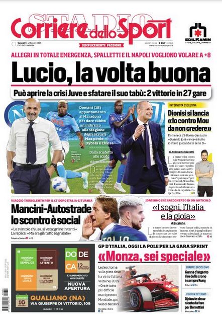 NewsCalcioIn Evidenza Rassegna stampa del 10 settembre. Prime pagine sportive By Giuseppe Sacco il Set 10, 2021 - 07:20:26 0 Condividi In primo piano dai principali quotidiani sportivi nazionali Factory della Comunicazione CalcioNapoliRassegnaStampa 0 Condividi FacebookTwitterGoogle+ReddItWhatsAppPinterestE-mail