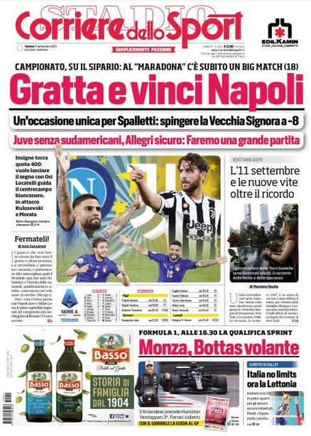 Rassegna StampaCalcioNews Rassegna stampa del’ 11 settembre. Prime pagine sportive By Giuseppe Sacco il Set 11, 2021 - 07:56:34 0 Condividi In primo piano dai principali quotidiani sportivi nazionali Factory della Comunicazione CalcioNapoliRassegnaStampa 0 Condividi FacebookTwitterGoogle+ReddItWhatsAppPinterestE-mail