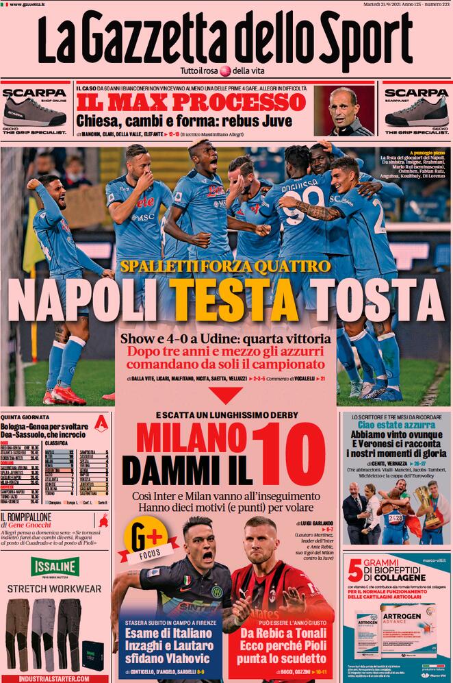 NewsCalcioIn Evidenza Rassegna stampa del 21 settembre. Prime pagine sportive By Giuseppe Sacco il Set 21, 2021 - 07:15:54 0 Condividi In primo piano sui principali quotidiani sportivi nazionali Factory della Comunicazione CalcioNapoliRassegnaStampa 0 Condividi FacebookTwitterGoogle+ReddItWhatsAppPinterestE-mail