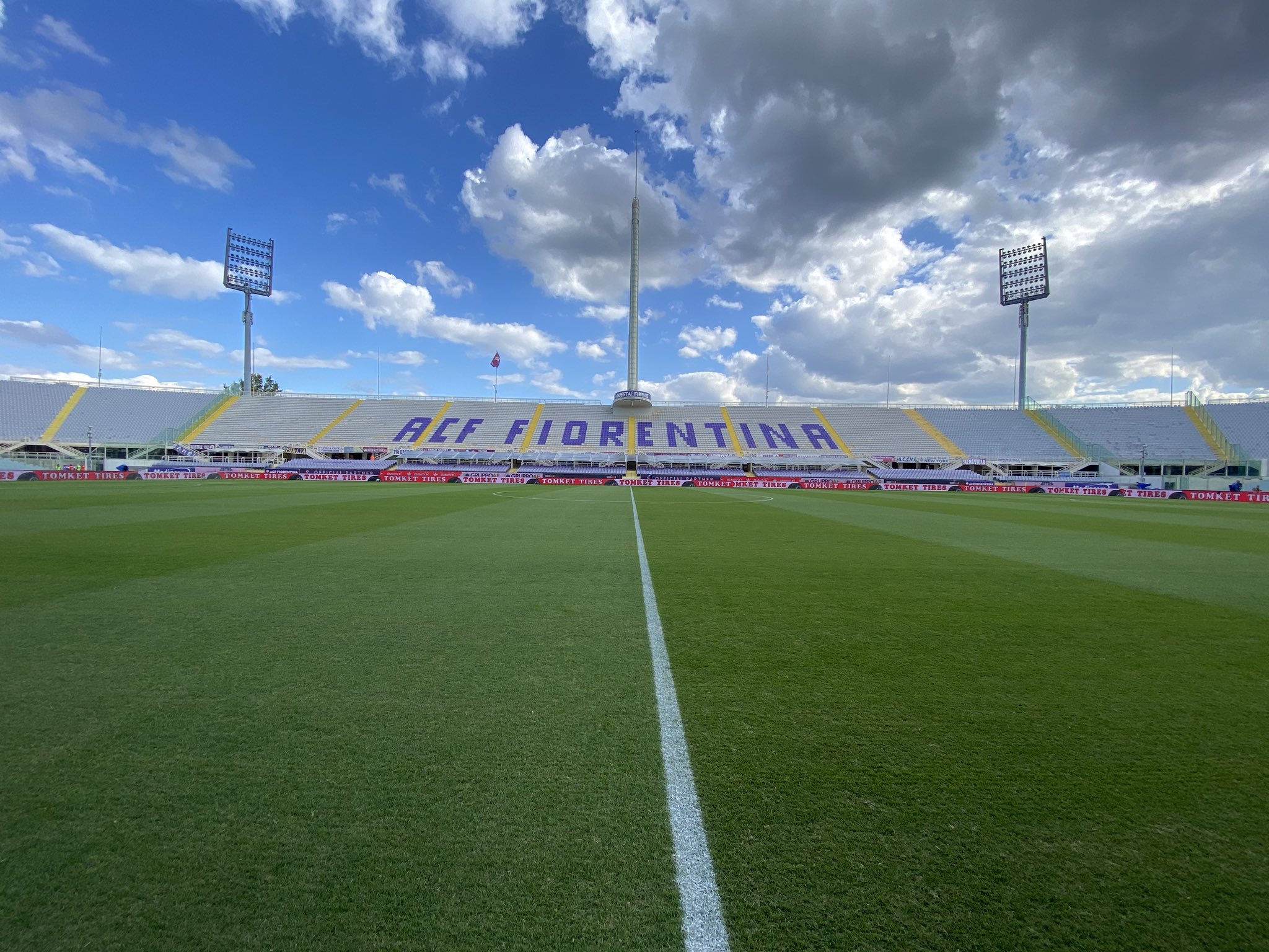 16,47 – La Fiorentina è sul terreno di gioco, testa il terreno di gioco, mentre dall’alto qualche nuvola all’orizzonte.