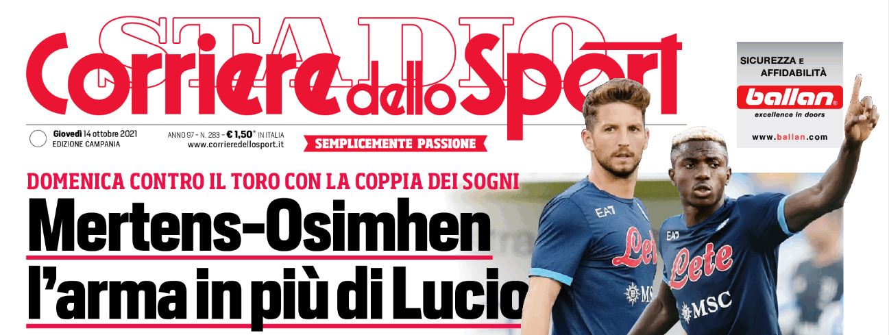 NewsCalcioRassegna Stampa CdS Campania – “LA FORMULA DI SPALLETTI: Osimhen più Mertens”. Dries è di nuovo il jolly da sfruttare! By Giuseppe Sacco il Ott 14, 2021 - 08:00:50 0 Condividi In primo piano e nel profilo interno del Cds edizione della Campania Factory della Comunicazione CalcioMertensNapoliOsimhen 0 Condividi FacebookTwitterGoogle+ReddItWhatsAppPinterestE-mail
