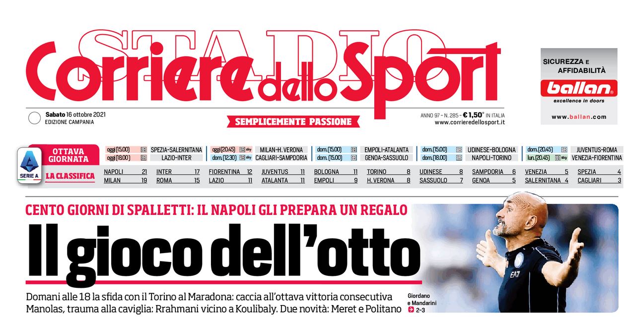 Rassegna stampa del 16 ottobre. Prime pagine sportive