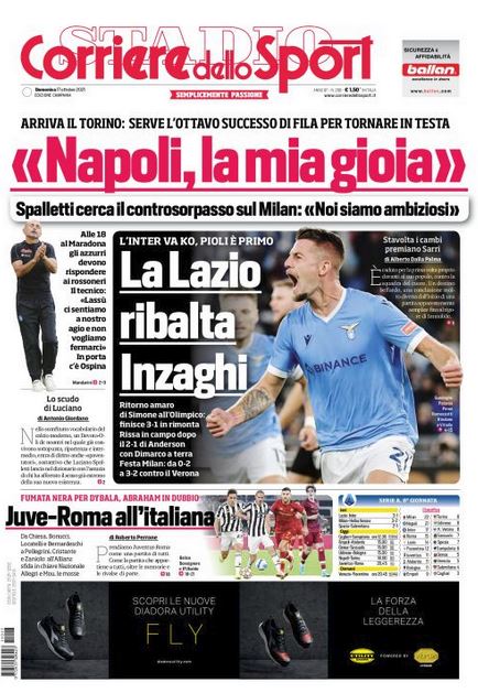 NewsCalcioIn Evidenza Rassegna stampa del 17 ottobre. Prime pagine sportive By Giuseppe Sacco il Ott 17, 2021 - 07:20:31 0 Condividi In primo piano dai principali quotidiani sportivi nazionali Factory della Comunicazione CalcioNapoliRassegnaStampa 0 Condividi FacebookTwitterGoogle+ReddItWhatsAppPinterestE-mail